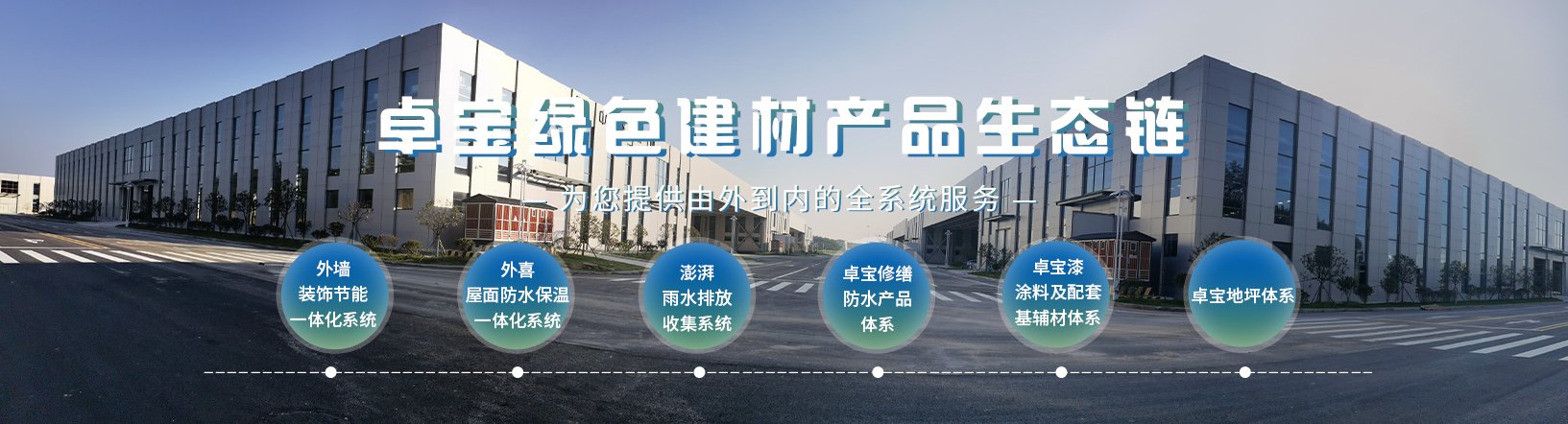 湖北卓寶建筑節能科技有限公司是卓寶集團旗下全資子公司,公司將綠色建筑理念和卓寶創新基因深度融合,打造了涵蓋外墻裝飾節能一體化、防水保溫一體化、海綿城市雨水收集排放、內外墻涂料&基輔材、防水修繕、建筑地坪“六位一體”綠色產品生態鏈,提供自屋面到地面,自外墻到內墻,及防火防腐等一系列功能型綠色建材,適用于外圍護、內裝飾的全系統服務。通過自身研發優勢,累計申請百余項國家專利,并參與多項國家標準、地方標準制定,保障了每一塊出廠產品的質量,為客戶提供質量保障。